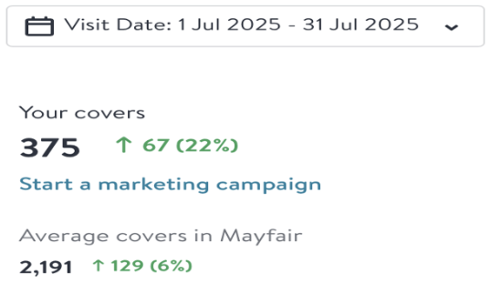 When looking at the month of July where we ran our first full month of activity, we saw a big +22% increase in covers compared to the previous month when no ads were run which produced an additional 67 customers.